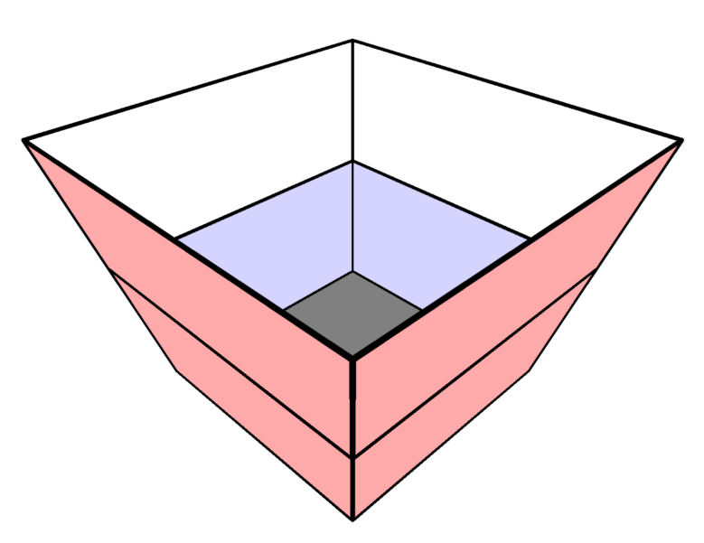 A container has a 1\times 1 square bottom, a 3\times 3 open square top, and four congruent trapezoidal sides, as shown. Starting when the container is empty, a hose that runs water at a constant rate takes 35 minutes to fill the container up to the midline of the trapezoids.