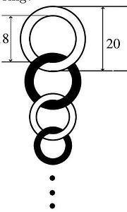 A number of linked rings, each 1 \mathrm{~cm} thick, are hanging on a peg. The top ring has an outside diameter of 20 \mathrm{~cm}. The outside diameter of each of the other rings is 1 \mathrm{~cm} less than that of the ring above it. The bottom ring has an outside diameter of 3 \mathrm{~cm}. What is the distance, in \mathrm{cm}, from the top of the top ring to the bottom of the bottom ring?