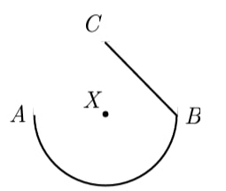 A ship travels from point A to point B along a semicircular path, centered at Island X. Then it travels along a straight path from B to C. Which of these graphs best shows the ship’s distance from Island X as it moves along its course?