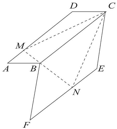 In the figure below, parallelograms A B C D and B F E C have areas 1234 \mathrm{~cm}^{2} and 2804 \mathrm{~cm}^{2}, respectively. Points M and N are chosen on sides A D and F E, respectively, so that segment M N passes through B. Find the area of \triangle M N C.