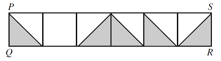 The rectangle PQRS is divided into six equal squares and shaded as shown. What fraction of PQRS is shaded?