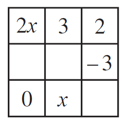 In the magic square, the sum of the three numbers in any row, column or diagonal is the same. The sum of the three numbers in any row is