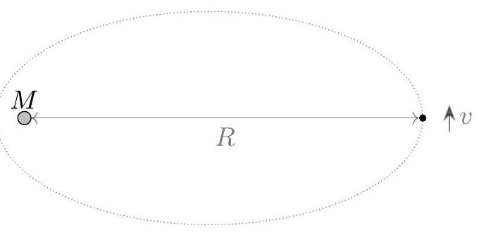 A mote of dust is initially located at distance R from the sun, which has mass M. At this point, the mote has a small tangential velocity v. Which of the following is a good approximation for the distance of closest subsequent approach between the mote and the sun?