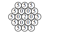 Starting with the 2 in the center, the number 2005 can be formed by moving from circle to circle only if the two circles are touching. How many different paths can be followed to form 2005?