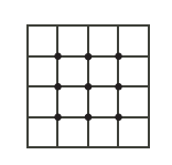 The nine interior intersection points on a 4 by 4 grid of squares are shown. How many interior intersection points are there on a 12 by 12 grid of squares?