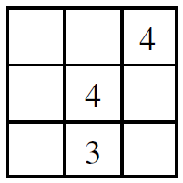 In the diagram, all rows, columns and diagonals have the sum 12. What is the sum of the four corner numbers?
