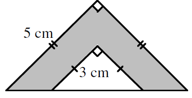 The diagram shows two isosceles right-triangles with sides as marked. What is the area of the shaded region?