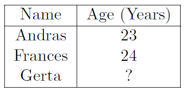 The average age of Andras, Frances and Gerta is 22 years. What is Gerta’s age?